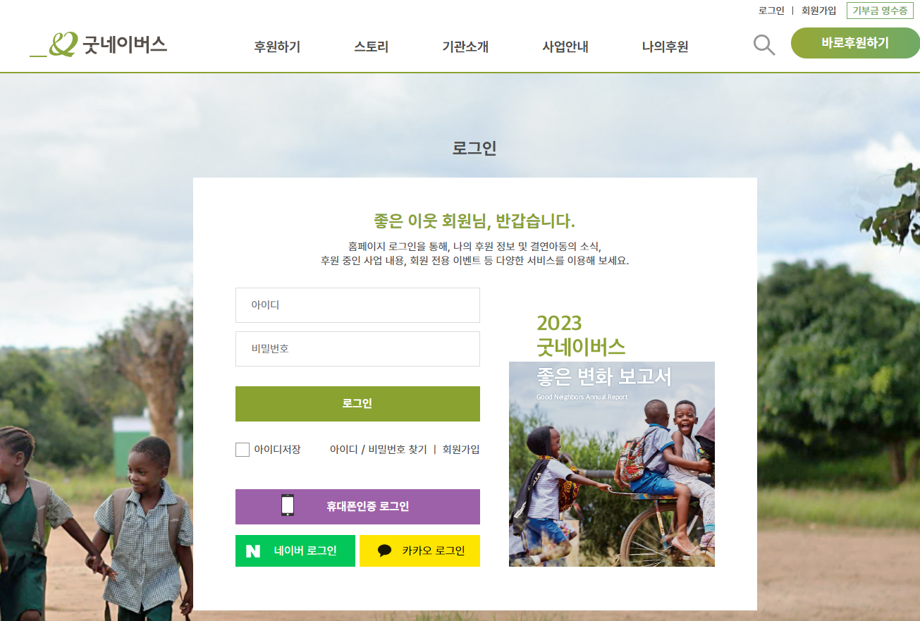 • 굿네이버스 공식 홈페이지에 접속합니다.