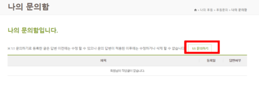 • [1:1 문의하기] 메뉴를 선택합니다.