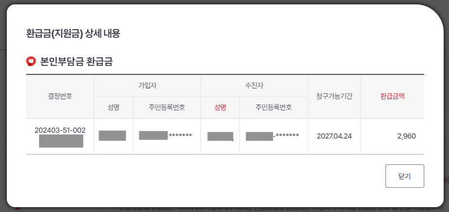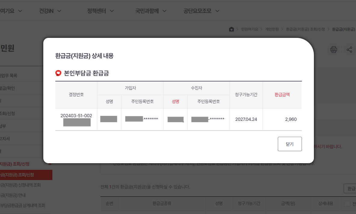 - 고지된 환급금 확인: 신청 전 지급 신청 안내문에 고지된 환급금 내역을 반드시 확인하고, 이상이 있을 경우 공단에 문의하세요.
