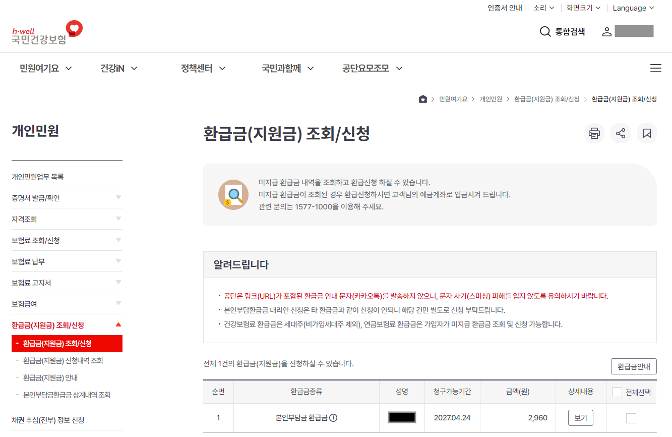 건강보험 환급금 신청 시 주의사항