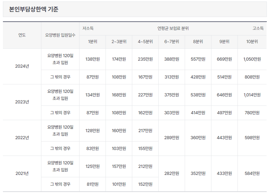 | 소득 분위 | 일반 | 요양병원 120일 초과 입원 시 |