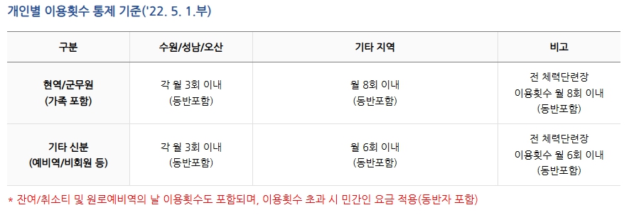 정회원, 준회원, 민간인 등 다양한 회원 자격에 따라 예약 가능 횟수와 요금이 다르게 적용됩니다.