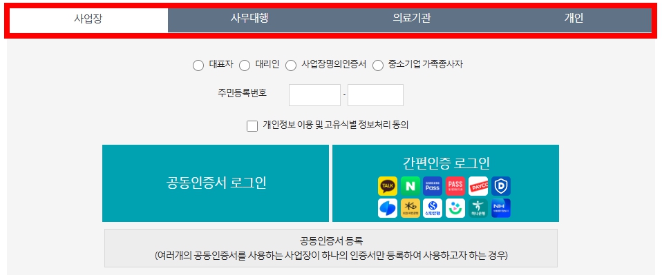 사업주는 법인 또는 개인 사업자 등록증을 통해 회원가입을 진행하며, 근로자는 개인 인증을 통해 가입 절차를 마칠 수 있습니다.