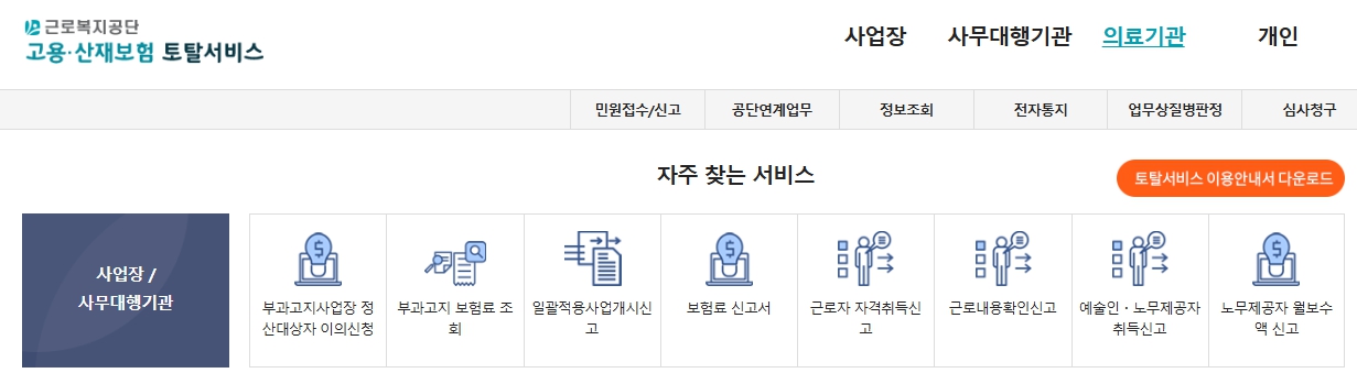 근로복지공단의 고용·산재보험 토탈서비스는 다양한 기능을 제공합니다.