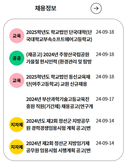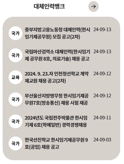 공무원 및 공공기관, 공기업 등 다양한 정부 관련 기관의 채용 공고를 통합적으로 제공하며, 이를 통해 구직자들은 다양한 일자리 정보를 한 곳에서 쉽게 확인할 수 있습니다.