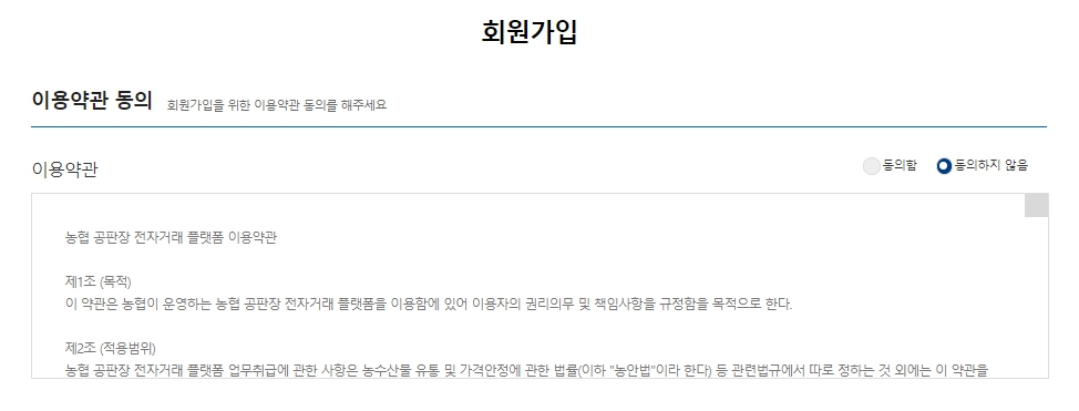농협 공판장 인터넷 통합거래시스템을 이용하려면 먼저 회원가입을 해야 합니다.