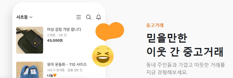당근마켓은 대한민국의 대표적인 지역 기반 중고거래 플랫폼으로, 주로 모바일 앱을 통해 사용됩니다.