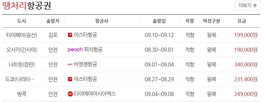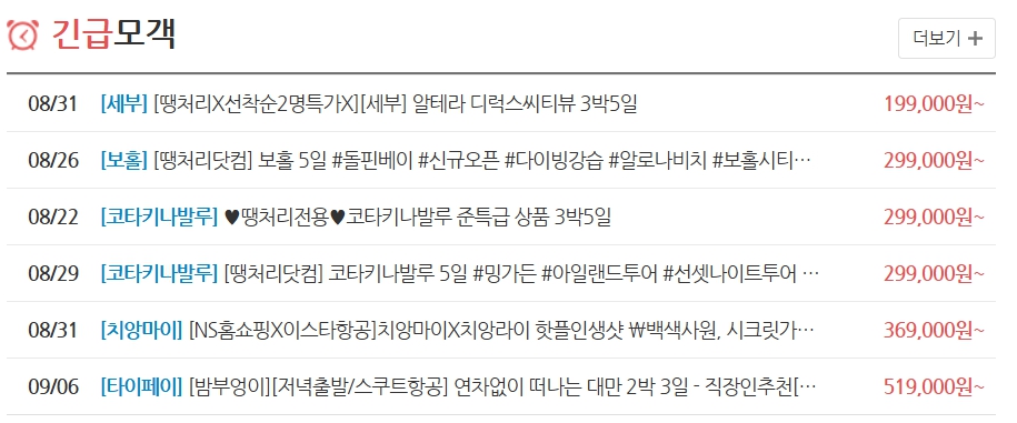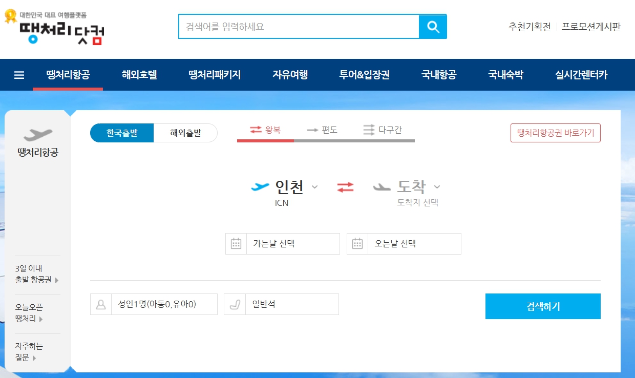 이 사이트는 항공권뿐만 아니라 호텔, 여행 패키지 상품까지 땡처리로 제공하며, 주기적으로 업데이트되는 할인 상품들을 쉽게 확인할 수 있습니다.