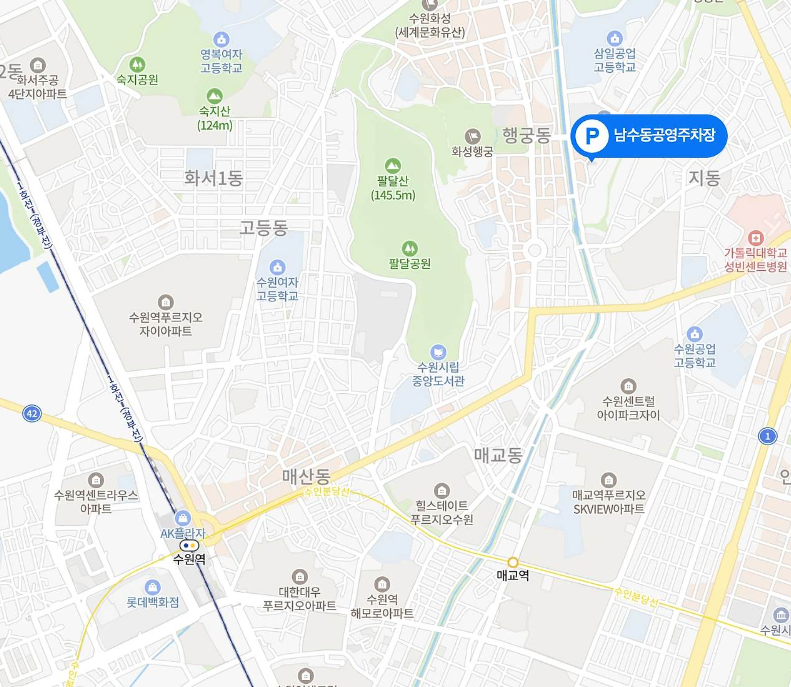 교동 공영주차장은 수원역에서 조금 떨어져 있습니다.