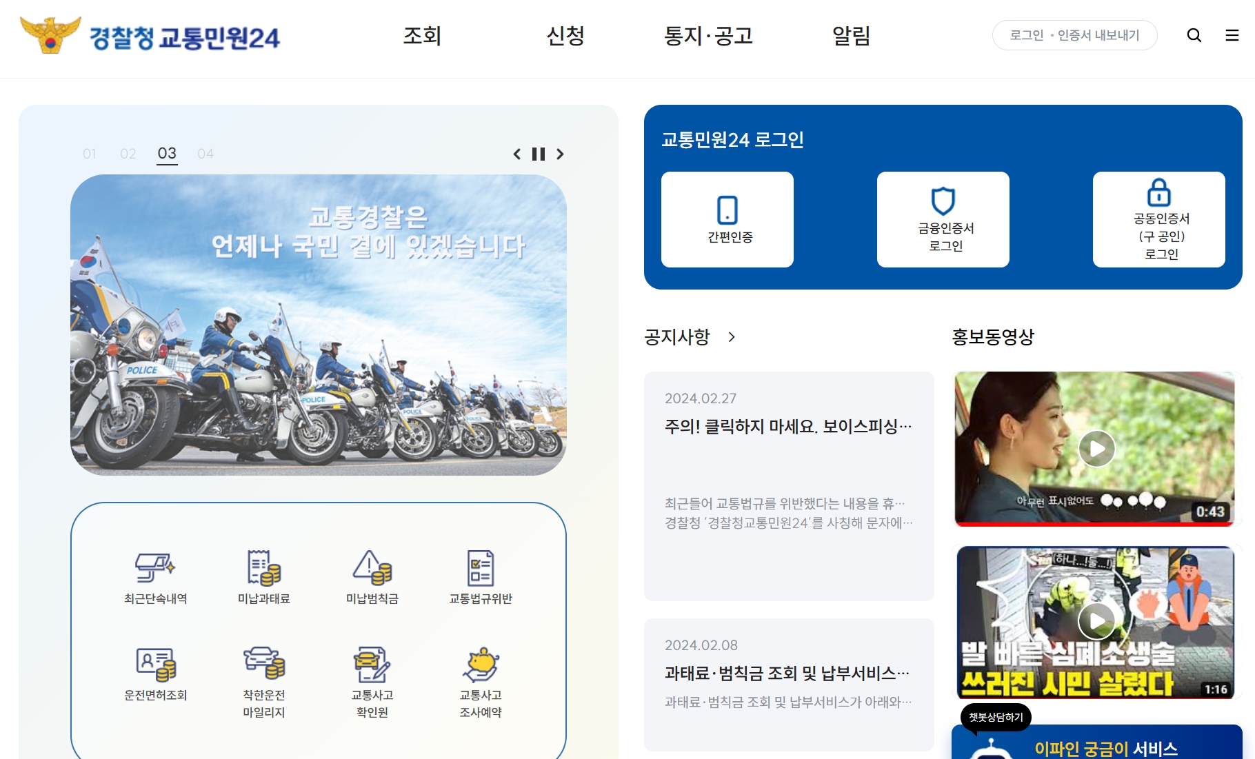경찰청 교통민원 24(이파인) 홈페이지에 접속합니다.