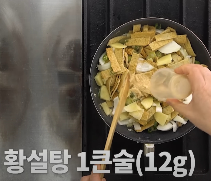 여기서 물의 양은 어묵의 종류나 채소의 수분량에 따라 조절할 수 있습니다.