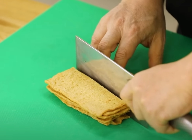 - 어묵 준비: 얇은 사각어묵을 길게 반으로 자른 후, 2cm 두께로 얇게 썰고, 봉어묵도 1cm 두께로 어슷하게 썬다.
