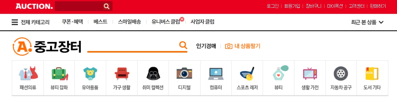옥션 중고장터는 다양한 카테고리의 중고 물품을 거래할 수 있는 플랫폼으로, 전자기기, 가전제품, 패션 아이템 등 다양한 상품을 저렴한 가격에 구입할 수 있습니다.