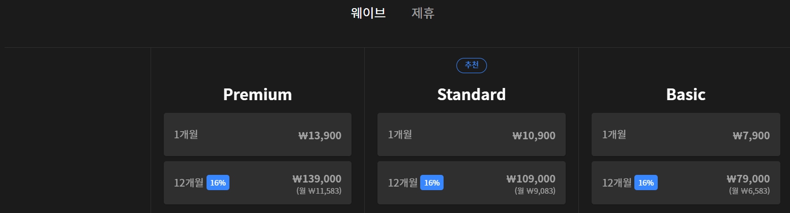 웨이브는 사용자의 필요에 따라 다양한 요금제를 제공합니다. 기본적으로 베이직 요금제는 광고가 포함된 저렴한 플랜으로, 고화질 콘텐츠를 즐길 수 있습니다.