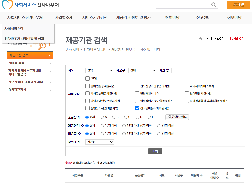 서비스 제공기관은 사회서비스 전자바우처 포털(www.socialservice.or.kr)에서 확인할 수 있습니다.