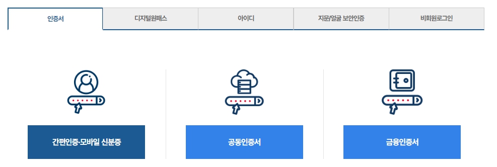 공인인증서나 간편 인증을 통해 본인 인증을 완료하면 민원 신청이 가능합니다.