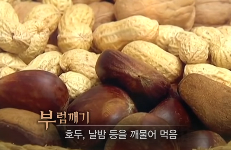 부럼 깨기: 견과류를 깨물어 먹으며 한 해 동안 건강을 기원하는데, 이는 또한 영양을 보충하고자 했던 조상들의 지혜를 엿볼 수 있는 풍습이죠.