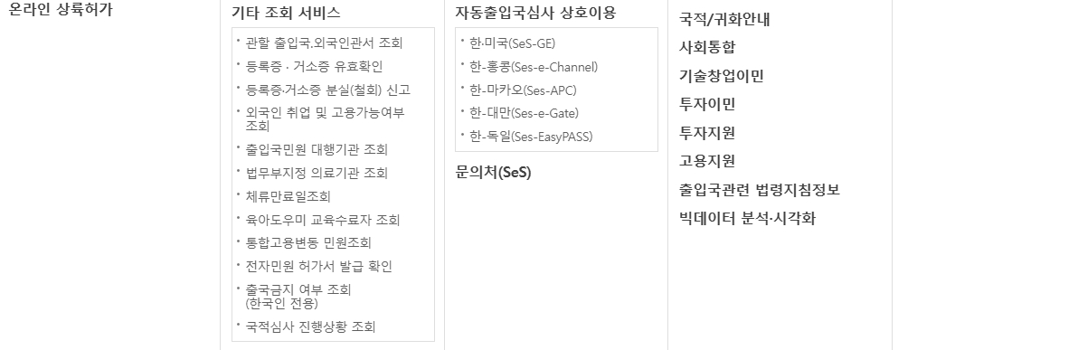 또한 외국인 등록증 발급, 체류 기간 연장, 변경 신청 등의 기능도 지원하며, 이를 통해 외국인들이 법적 체류 상태를 유지할 수 있도록 돕고 있습니다.