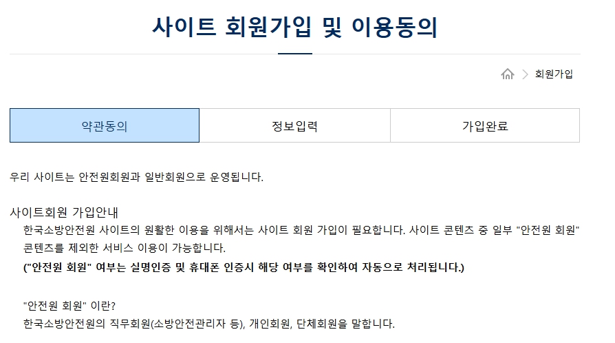 한국소방안전원 사이버교육센터를 이용하려면 먼저 회원으로 가입해야 합니다.
