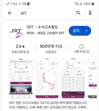 - 검색 결과에 나타나는 SRT 예매 앱을 선택합니다.